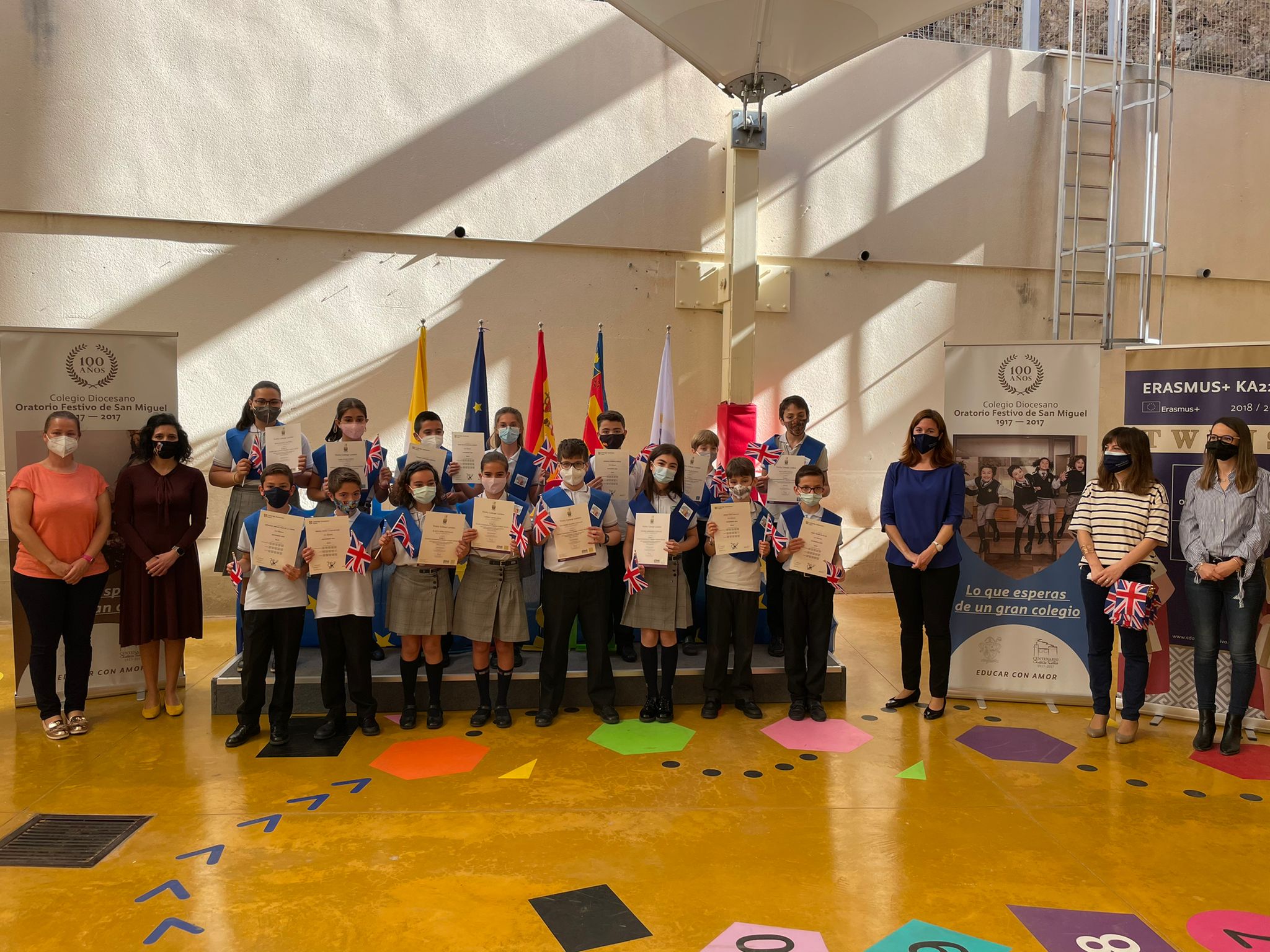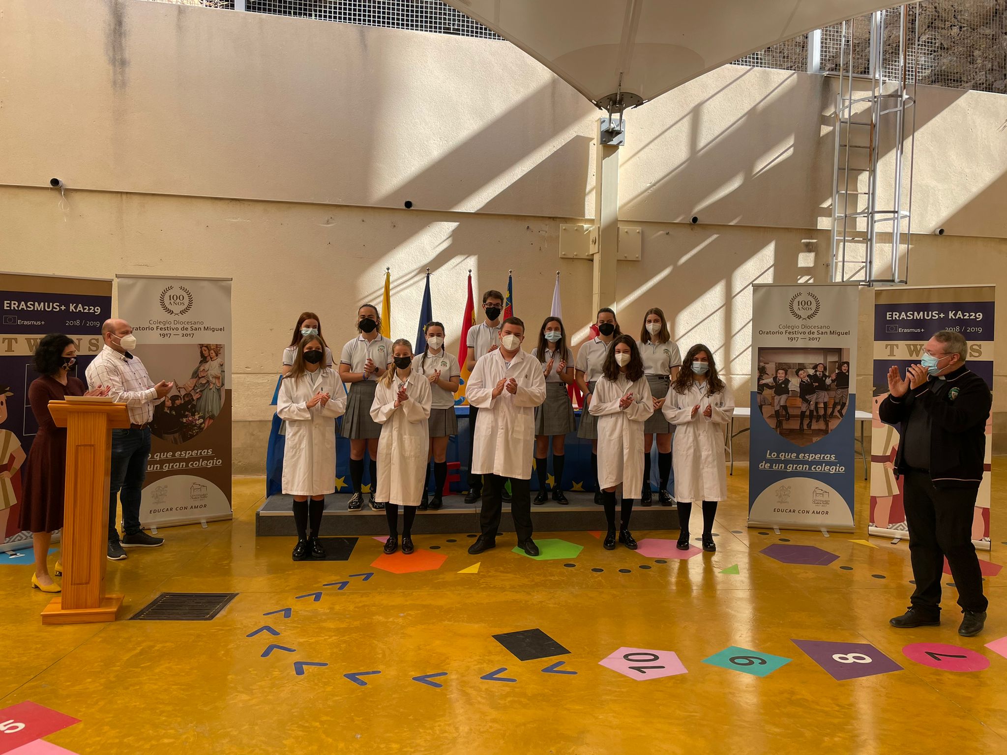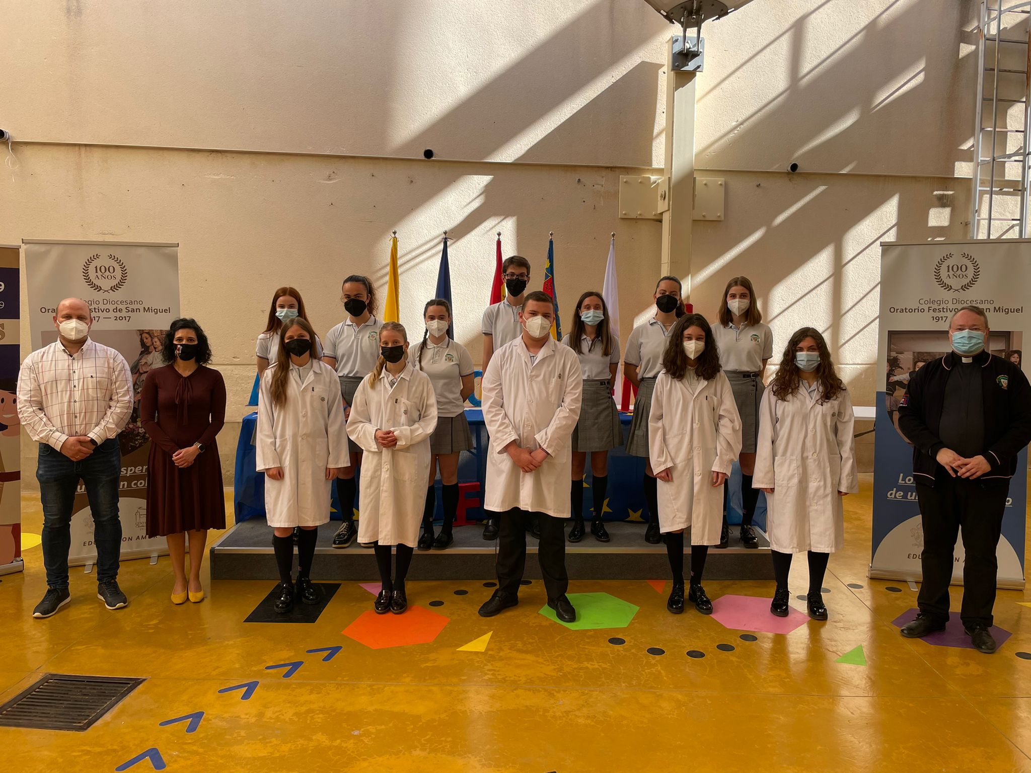 Con motivo de la celebración del Día de Europa realizamos una ceremonia académica, en la que hicimos entrega de los certificados oficiales de idiomas de los niveles del MECR alcanzados por nuestro alumnado, con reconocimiento internacional. A su vez, se procedió a la imposición de la bata blanca a los alumnos de secundaria que han accedido al Equipo de Excelencia don Bosco del Colegio, por destacar en los ámbitos científico-matemático, tecnológico y socio-lingüístico.
