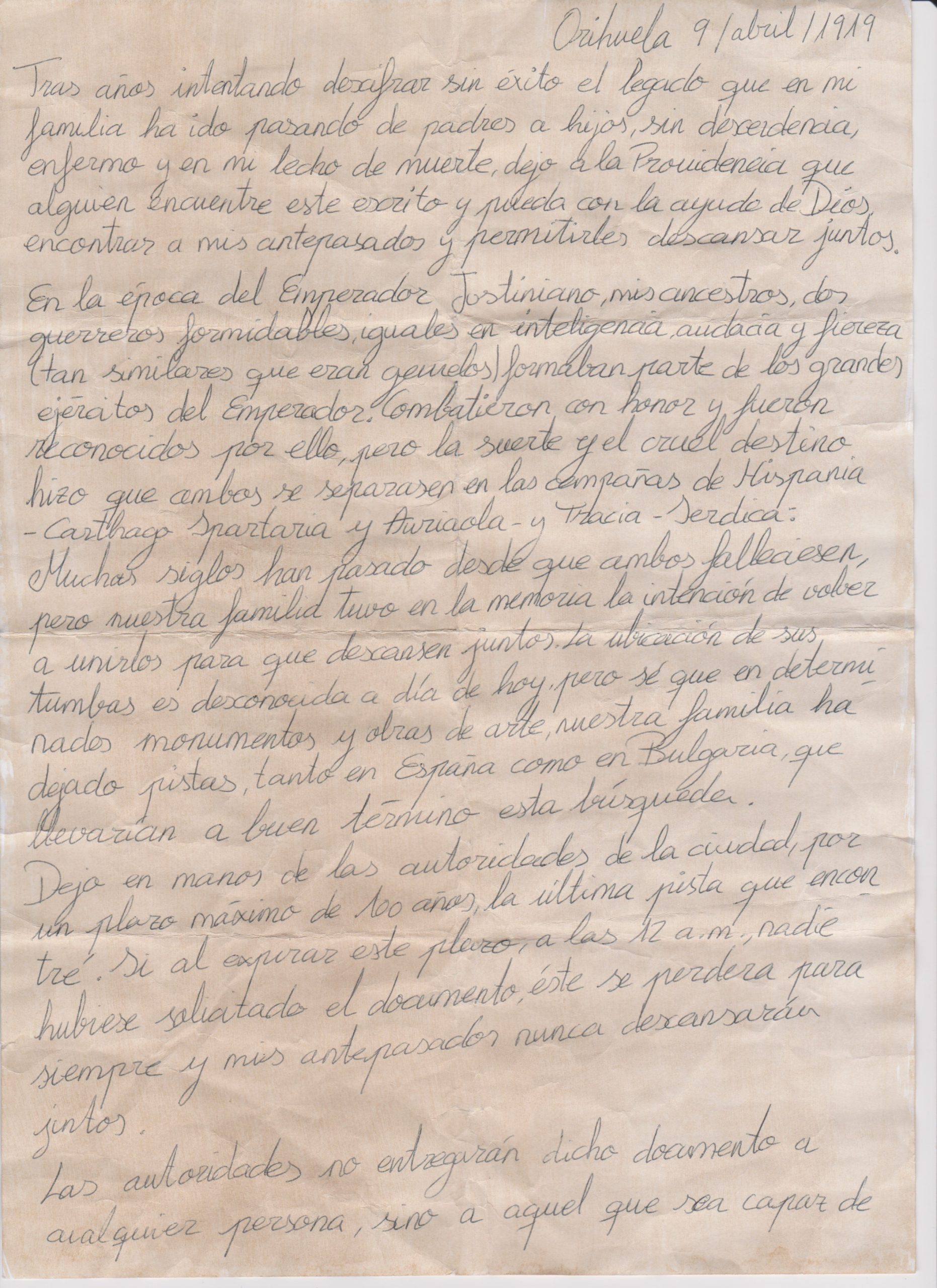 Es fundamental que, si queréis ayudarles en su búsqueda, viajéis hasta Orihuela antes del día 9 de abril, de lo contrario el secreto se perderá para siempre.
