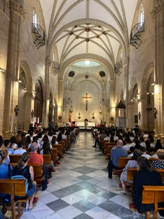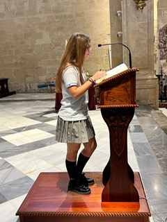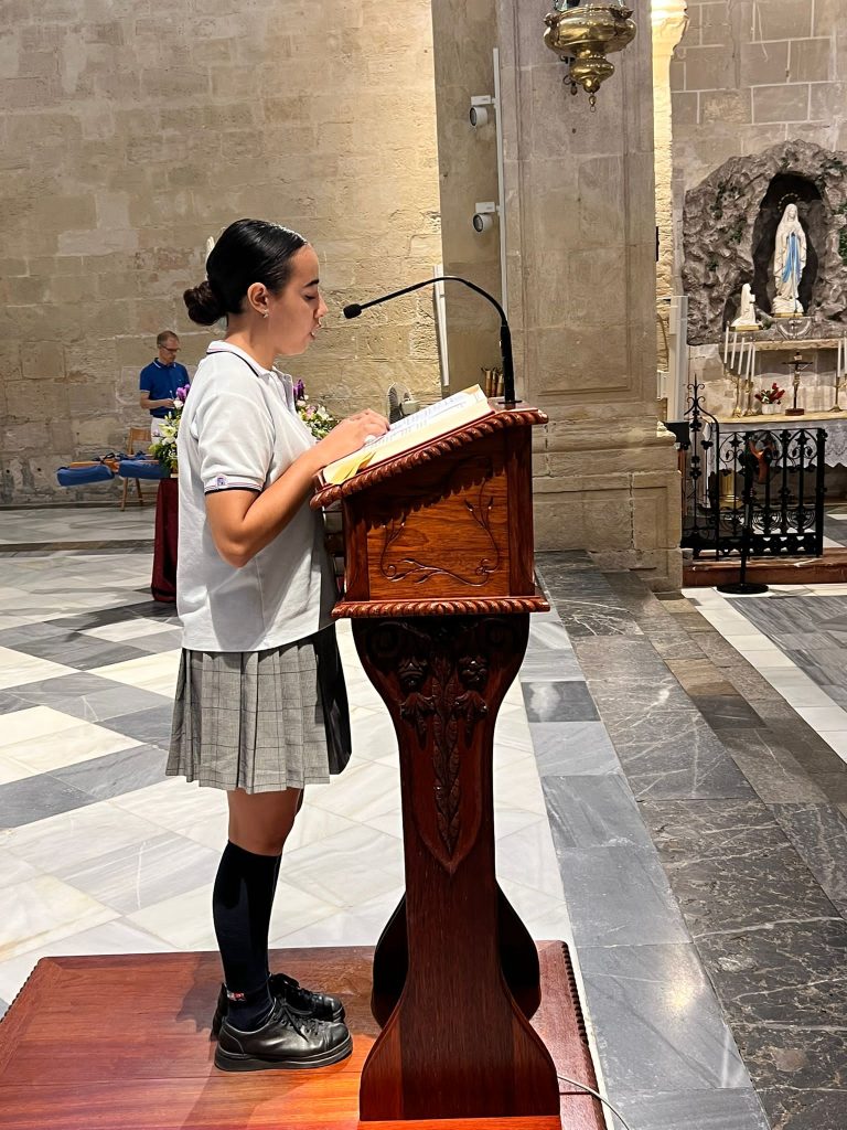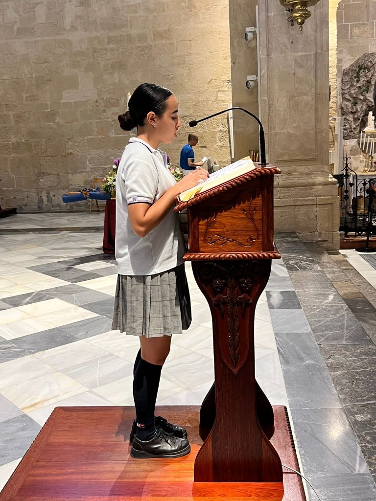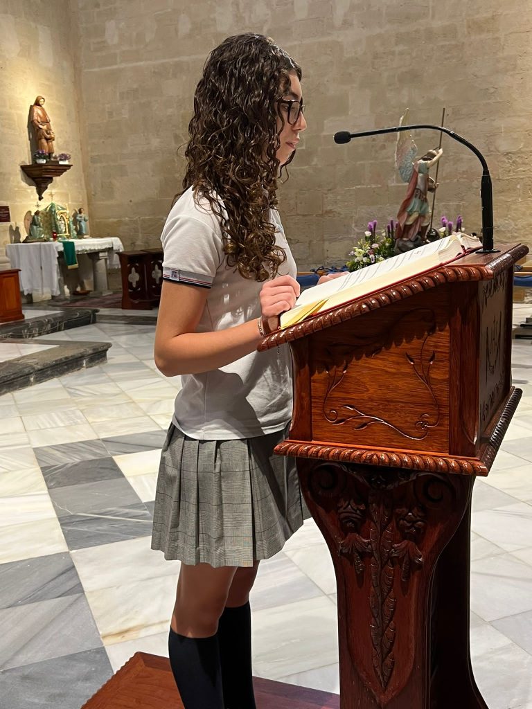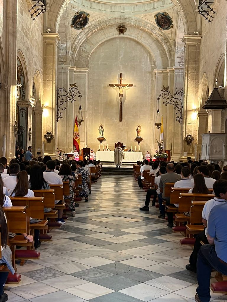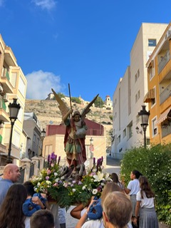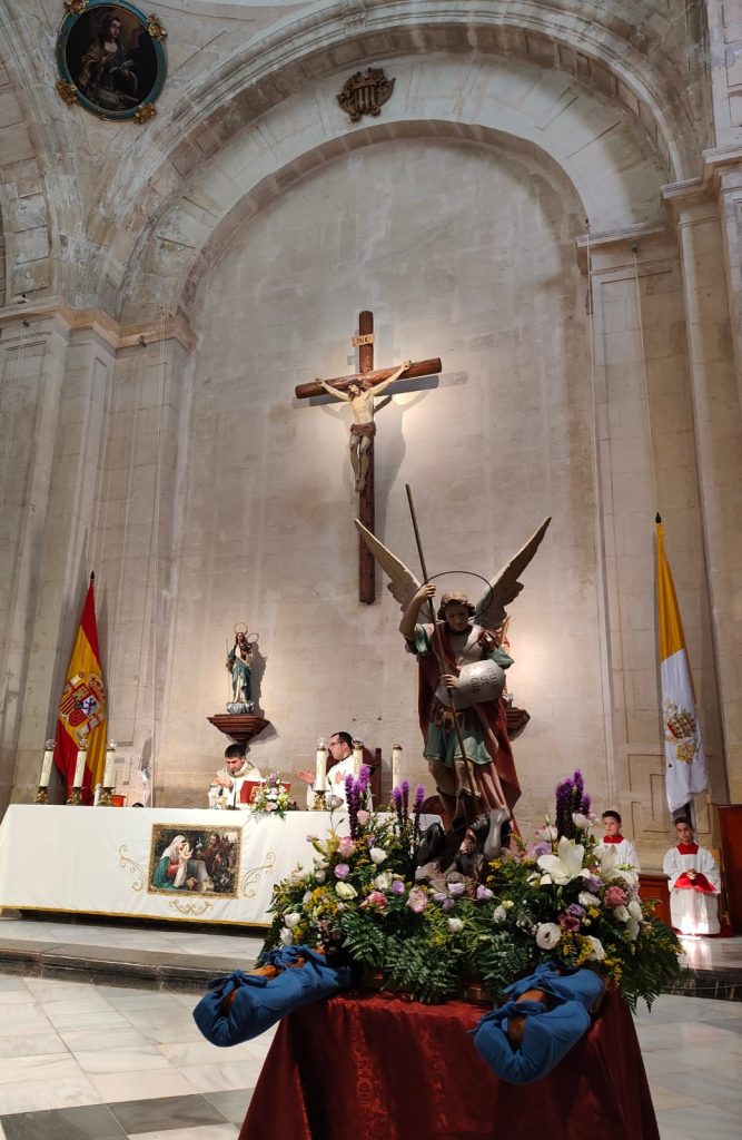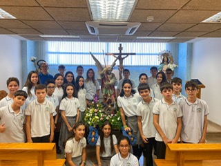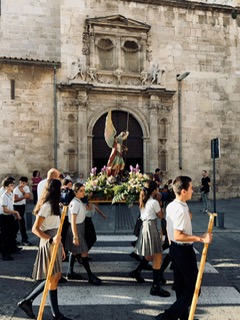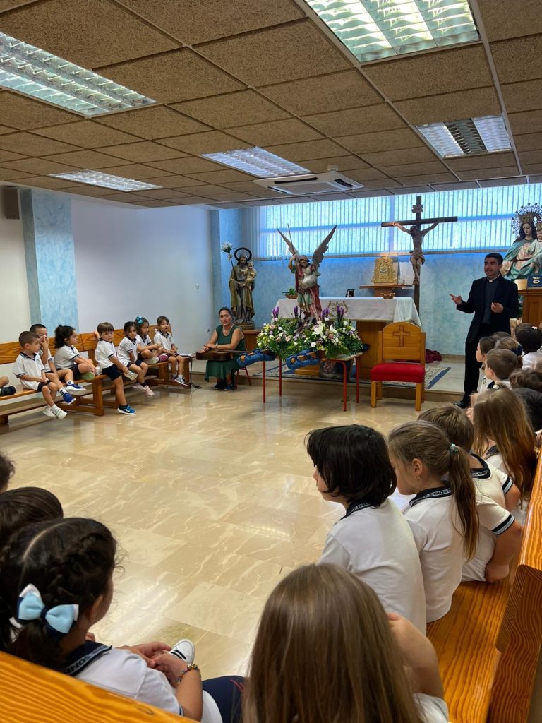 Por primera vez, nuestra comunidad educativa acompaña en romería la imagen de San Miguel que veneramos en la capilla, hacia la Iglesia Parroquial de las Santas Justa y Rufina. Allí nuestro director titular, el Padre Marcos celebra la Eucaristía acompañado por D. Jesús Rosillo, director del Colegio Diocesano Santo Domingo.