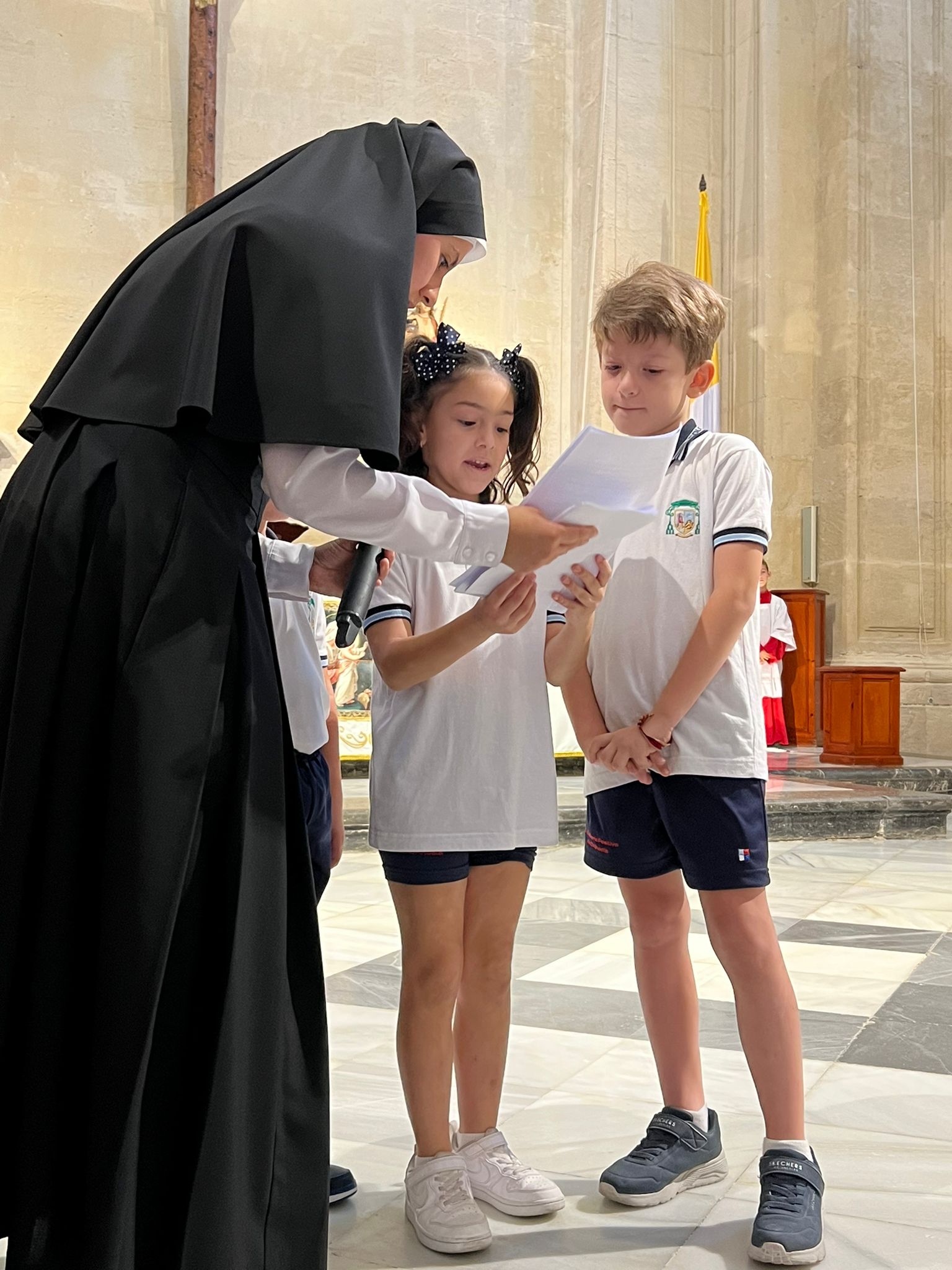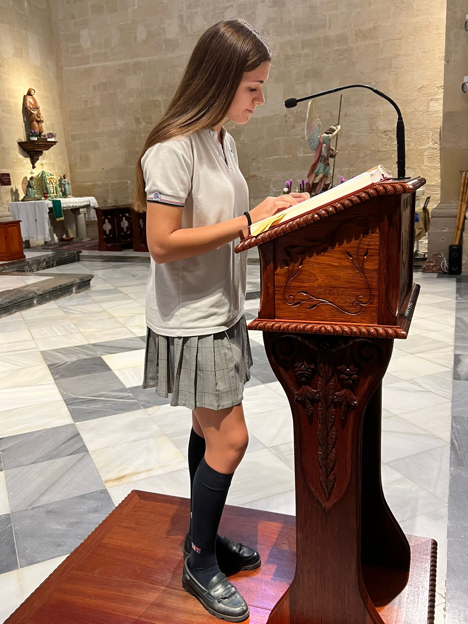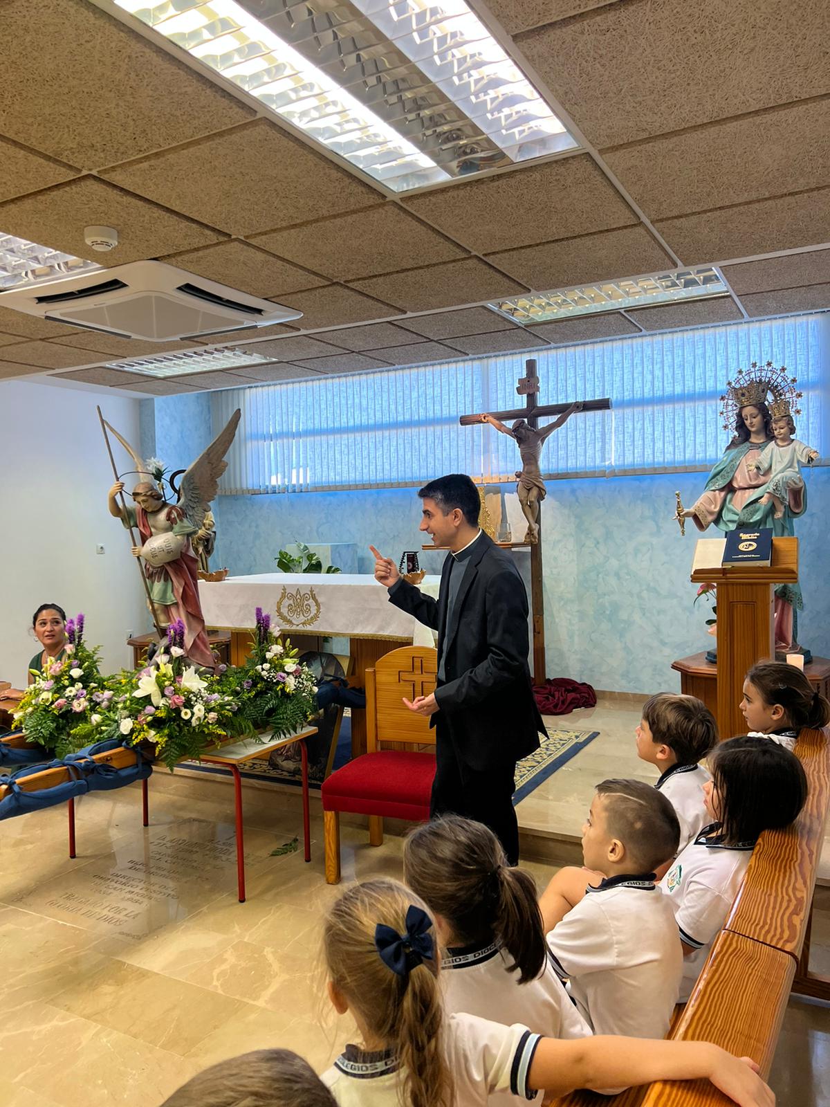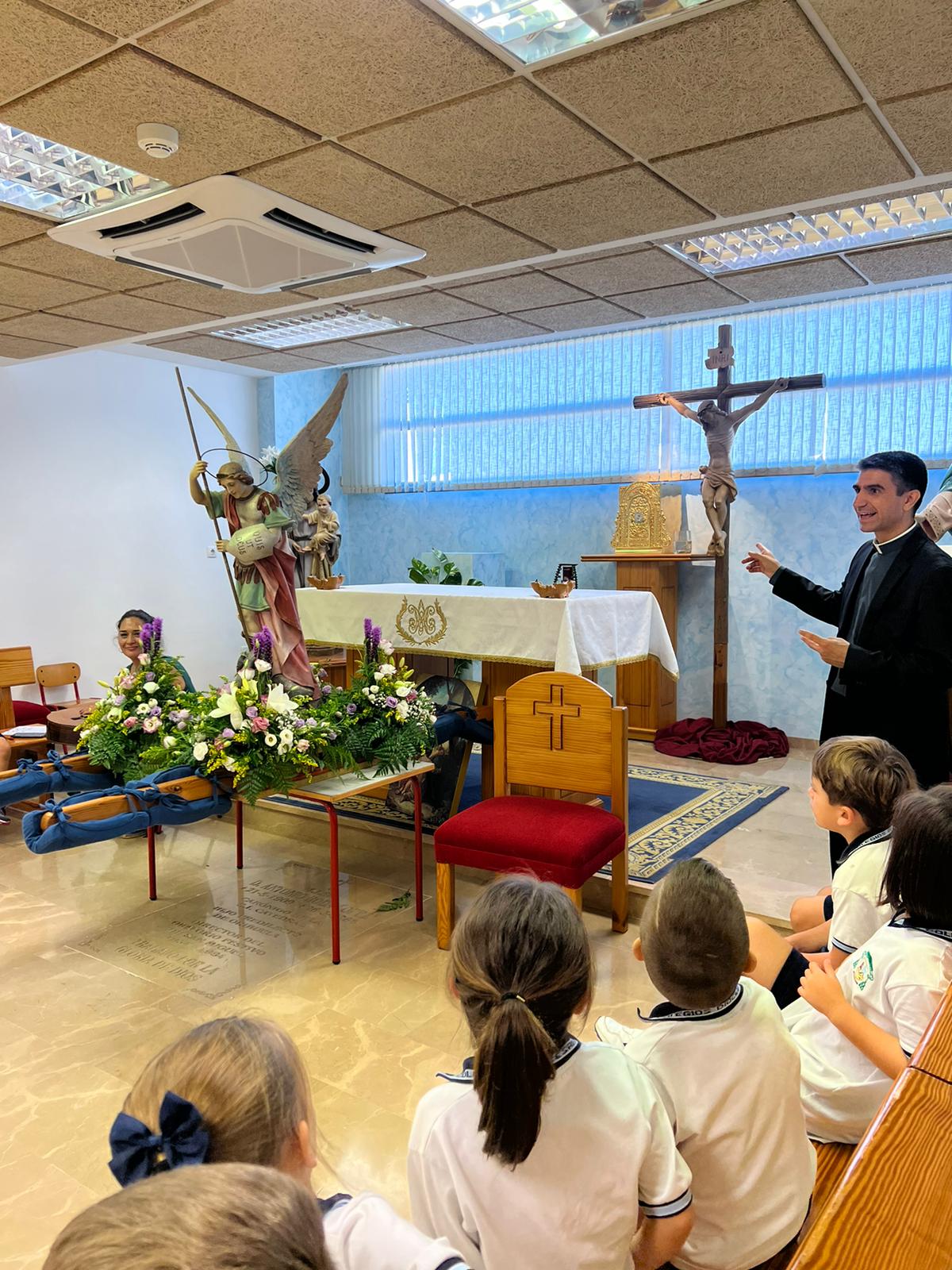 Por primera vez, nuestra comunidad educativa acompaña en romería la imagen de San Miguel que veneramos en la capilla, hacia la Iglesia Parroquial de las Santas Justa y Rufina. Allí nuestro director titular, el Padre Marcos celebra la Eucaristía acompañado por D. Jesús Rosillo, director del Colegio Diocesano Santo Domingo.