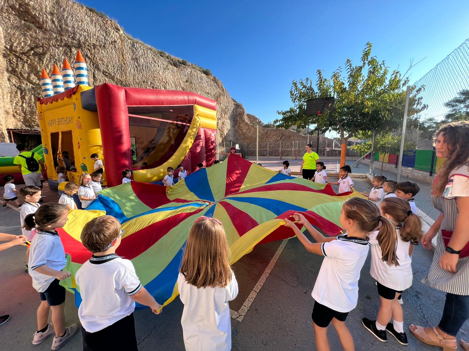 A su término, volvemos alegres hacia el colegio, recorriendo las calles adyacentes al mismo, para continuar con júbilo la jornada lúdico-festiva, en la que no ha faltado por gentileza de la AMPA,  el tradicional bollo con chocolate del Padre Roda.