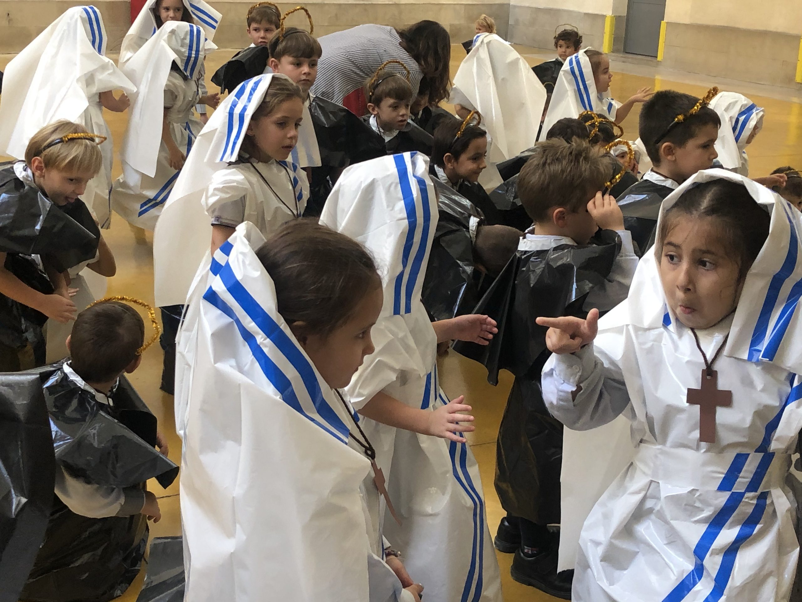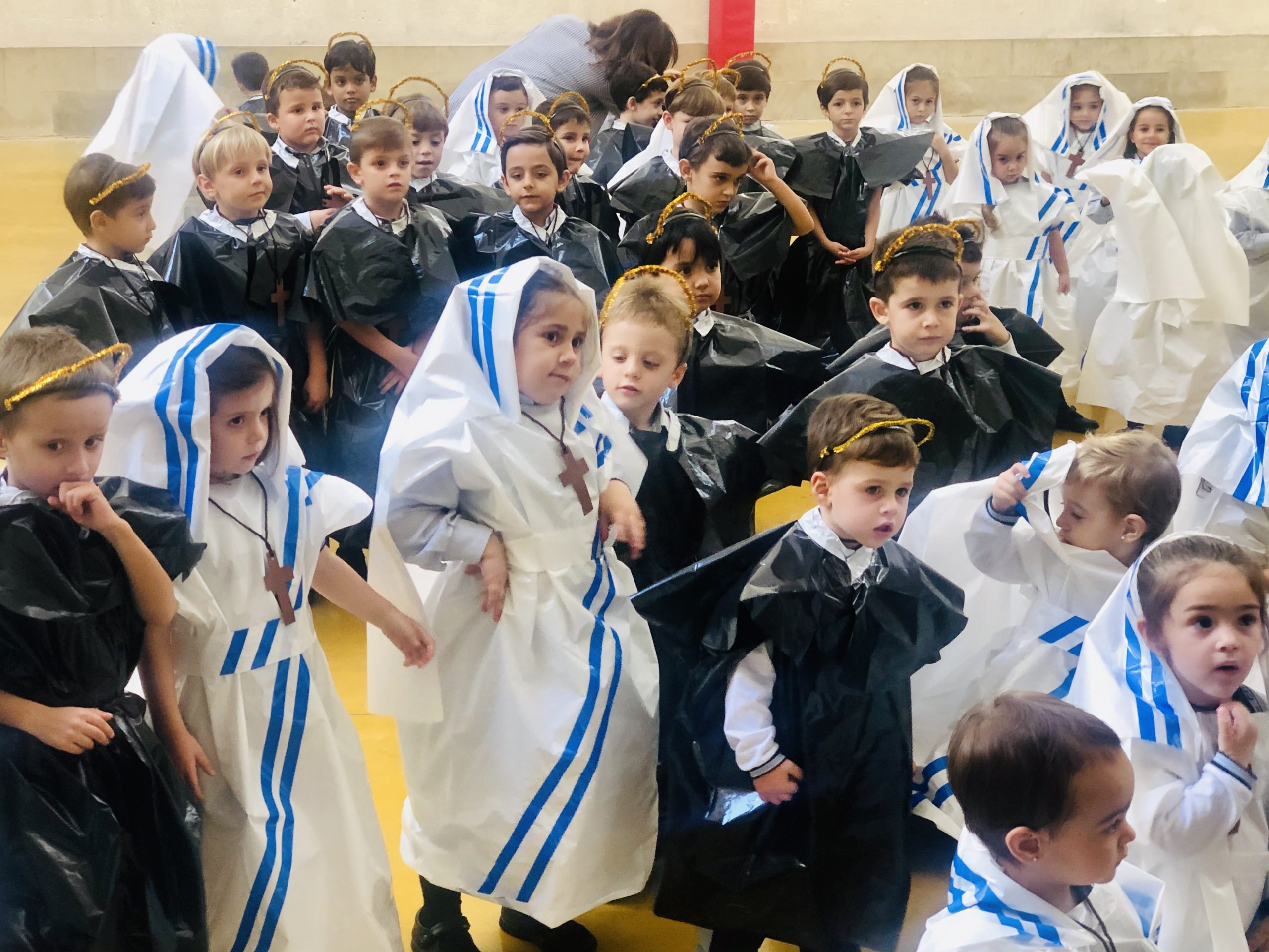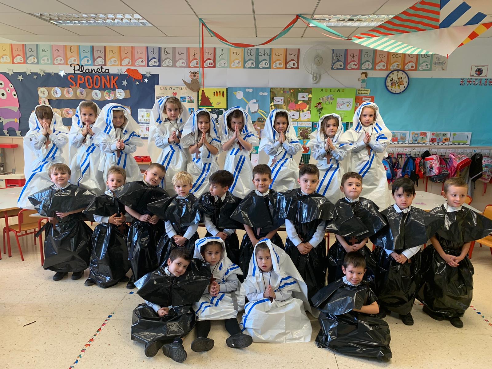 La tarde del 31 de octubre, víspera de la festividad de Todos los Santos, nuestros pequeños de infantil se han disfrazado de santos y han disfrutado después de una merienda por gentileza de la AMPA. Concretamente, de san Juan Bosco, salesiano e inspirador de nuestro colegio y santa Teresa de Calcuta.  A su término, celebramos la Eucaristía, ofreciéndola por los difuntos de nuestro colegio en este año 2019.