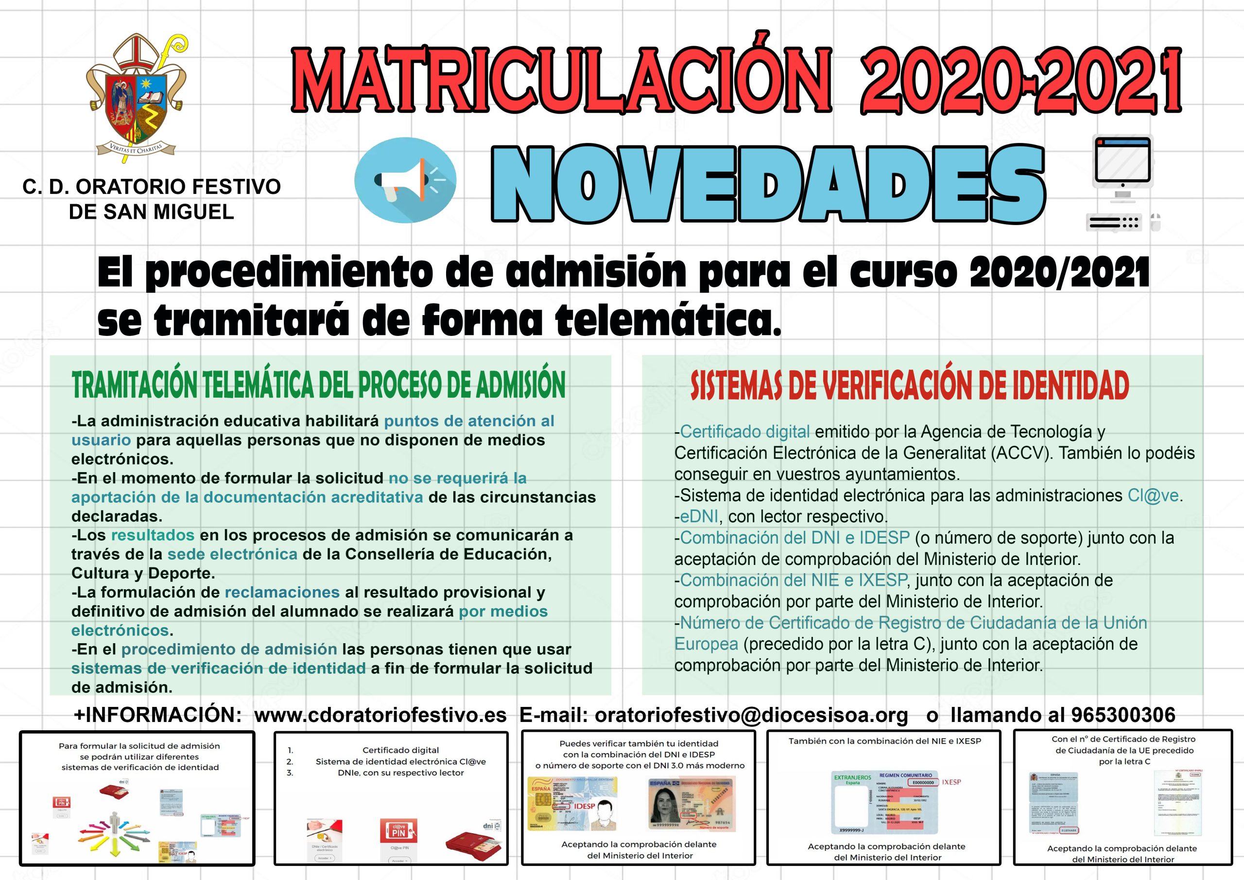 – Con motivo del proceso de admisión del alumnado, la Conselleria ha creado una web para realizar la matrícula de manera telemática. En esta web encontraréis toda la información relativa a este proceso. El periodo de admisión en Infantil y Primaria es del 8 al 16 de junio, y para el resto de etapas educativas, del 17 al 25 de junio.