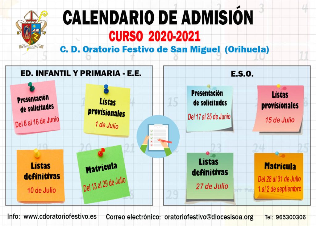 1. Si necesitan resolver cualquier duda o información, nuestro colegio pone a su disposición diferentes formas de contacto y medios para ayudarles en la realización del proceso. También pueden venir al centro para realizar su solicitud de manera presencial recibiendo la atención y el asesoramiento de nuestro personal, durante los días del período de admisión, es decir, desde el 8 de junio.