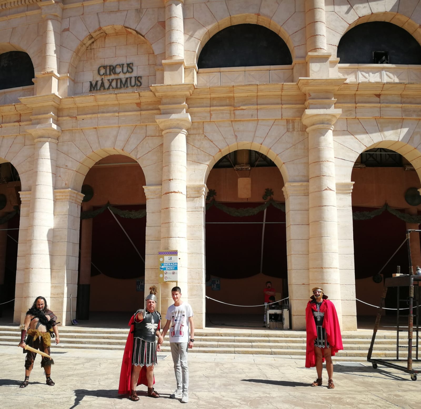 Llegamos a Terra Mítica, un lugar plagado de diversión e historia a partes iguales. Disfrutamos de sus decorados, actividades y atracciones. Después de la comida, cuando nos encontrábamos en Roma y parecía que nos íbamos a volver con las manos vacías, un General Romano escogió de entre el público a uno de nosotros para capturar a Cayo Bruto, un peligroso bandido.
