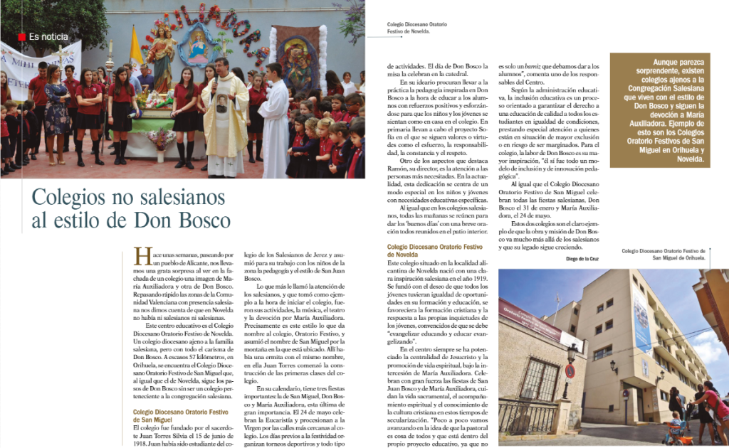 Actividades festivas, música, teatro, torneos deportivos, devoción a María Auxiliadora y San Juan Bosco, encuentros, convivencias, retiros, atención educativa a las personas necesitadas y con necesidades especiales y un sinfín de acciones que venimos desarrollando, desde hace ya más de 100 años, nos hace vivir en el Colegio con este estilo salesiano de Don Bosco.